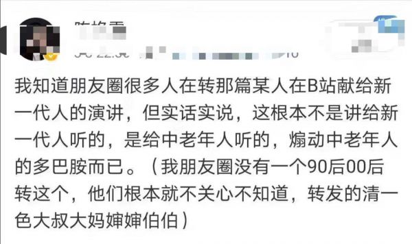 伴随着火爆,这则视频也引发了巨大争议。在B站的年轻人看来,这和自己的生活相距甚远。一位B站的用户的评论说出了不少年轻人的心声:“视频很好,很激动人心,可惜包括我身边的大部分人都不属于这种后浪……”这碗鸡汤对于很多B站的用户来讲,无法“干杯”。