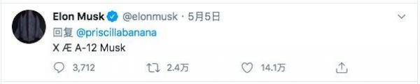 马斯克立刻给孩子想到了名字:X Æ A-12。