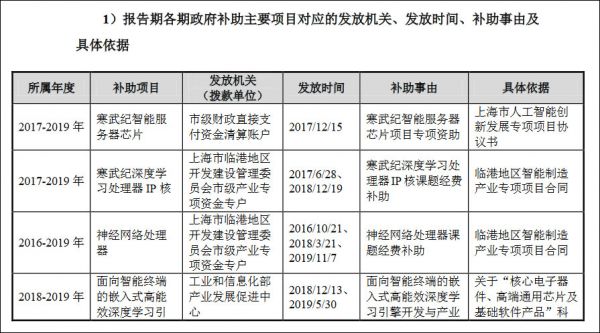 寒武纪接受政府补助项目