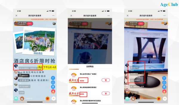 梁建章在三亚场1个小时的直播中,卖掉价值1000万元的酒店套餐。类似的玩法也正在中老年旅游行业流行。比如美好盛年,在疫情期间就推出了多场旅游相关直播,采用酒店房打折或买一送一等促销方式吸引用户关注和购买。在它家最近一场直播中,佛山某游乐场所的酒店价格分别为599元和999元,用户留言中不乏“好便宜”“怎么订”等,不难看出其消费实力和需求。