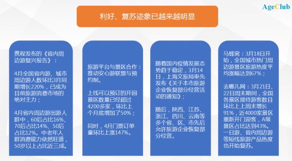 老年旅游产品可以利用线上平台的声势,帮助自身提前累积人气、提升知名度,在疫情结束后迅速实现复苏。