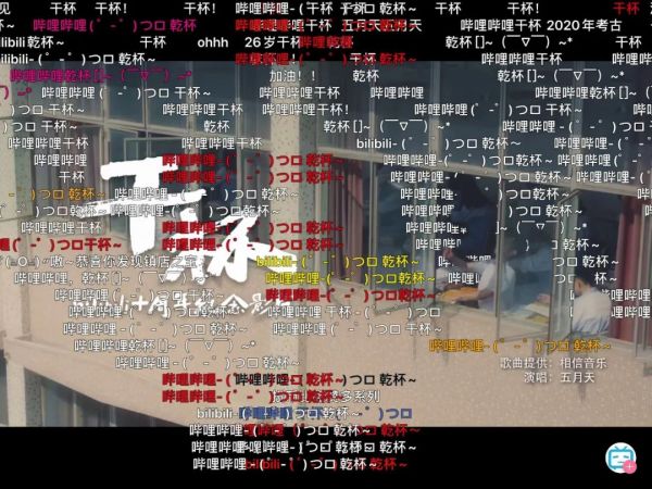 而弹幕刷的最多的一句话是:“哔哩哔哩(゜-゜)つロ干杯~”