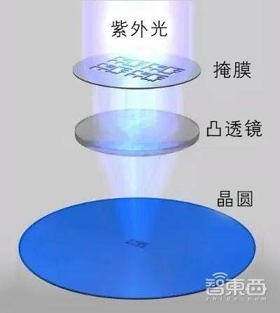 光刻机的运作原理是:先把设计好的芯片图案印在掩膜上,接着用激光光束穿过印着图案的掩膜和光学镜片,将芯片图案曝光在带有光刻胶涂层的硅片上。