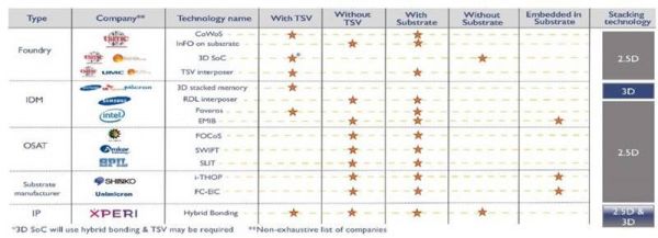 台积电、三星、英特尔均为堆叠封装技术的主要参与者