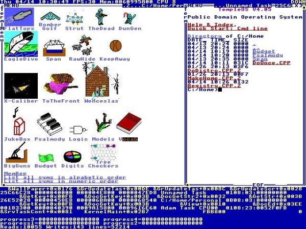 就连桌面的文件系统也叫做“红海”(Red Sea),而系统的编程语言则叫做 Holy C,这是 Terry Davis 通过基于 C 和 C ++ 改编而成的一种编程语言。