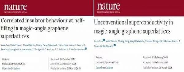 2018年3月5日,《Nature》连发两篇以曹原为第一作者的重磅石墨烯论文,曹原发现当两层平行石墨烯堆成约1.1°的微妙角度,就会产生神奇的超导效应,超导转变温度最高为1.7K。
