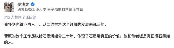 专业人士评论称,曹原2018年的工作足以给石墨烯续命20年,体现了石墨烯真正的价值。