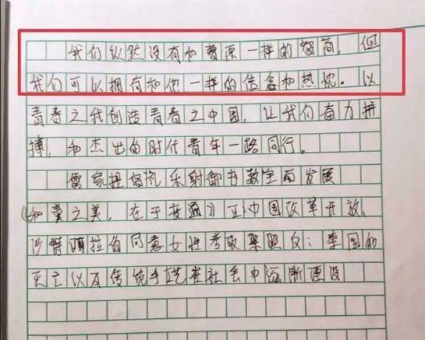 甚至有网友献上了亲笔作文,称曹原为“出现在高中作文素材里的人”。