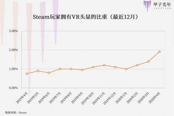 在此之前,消费级VR在游戏市场的渗透率一直很低,直到2019年底,Steam平台上拥有VR设备的玩家也不到1%。