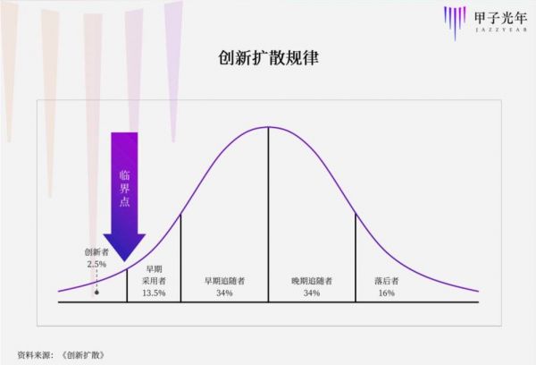 高增速背后,另一个值得注意的点是,Oculus已到了创新扩散模型中从“创新者”(2.5%)到“早期采用者”阶段的临界点,未来增长斜率会加速变陡。