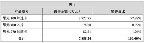 在云端智能芯片及加速卡业务中,思元100加速卡占比约达97.97%。