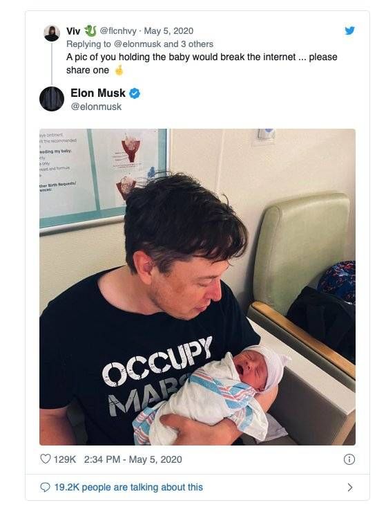 2020 年五四青年节当天,Elon Musk 和女友 Claire(Grimes Boucher)的第一个儿子出生了。随后他们很快公布了为孩子取的名字:X Æ A-12。