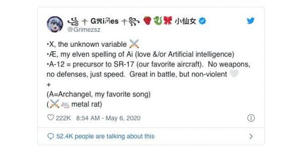 Elon Musk 女友 Grimes 发推文对名字“X Æ A-12”进行了解读|Twitter 截图