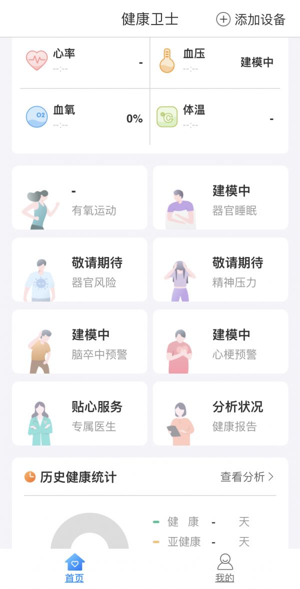 “平安好医生健康卫士”(IOS版)APP页面截图总体来看,该版本仍非常简单。其中脑卒中预警、心梗预警、器官风险、精神压力、器官睡眠等功能均未上线,处于“建模中”或“敬请期待”状态。IOS版本的历史记录显示,该APP于3周前完成1.0.0版本,1周前完成5.6.1版本。