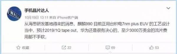 拿流片(也就是芯片的试生产)来说,业内人士@手机晶片达人在微博上的爆料称,7nm FinFET工艺流片费用约 3000 万美元。试一下,2 亿人民币砸进去了,如果是更先进的 EUV 工艺,还要更贵。
