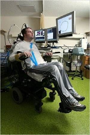 研究人员将传感器植入Nagle的大脑运动皮层区域,并连接到他头骨顶部深处的基座上,通过基座再连接电脑,这一通路将使Nagle的脑电信号可以给电脑发送指令。