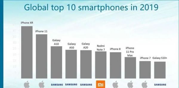 2019年全球前十大畅销机型榜单(图片来自互联网)
