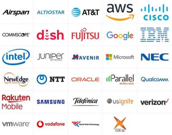 其他成员包括软件和无线电公司 Airspan、 Altiostar、 ComScope、 Juniper Networks、 Mavenir、 NewEdge Signal Solutions、 Parallel Wireless、 US Ignite、 VMWare、 World Wide Technology 和 XCOM-Labs。