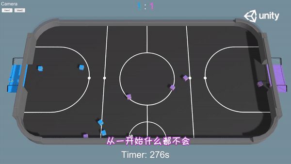 往前翻翻大谷的微博会发现,他做了很多有趣的小项目,比如AI足球队,大谷介绍道,他用了Unity的AI系统MLagent来训练球员,这些球员从最开始什么都不会到最后互相配合,到现在他已经打不过了。大谷感叹道,“AI在游戏领域完全可以大展拳脚”。