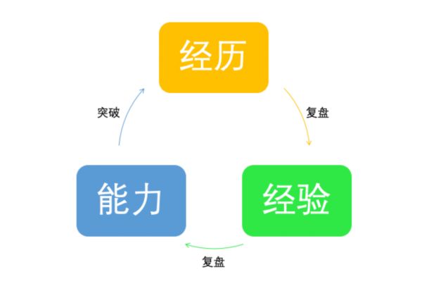 “经历”不等于“经验”,“经验”也不等于“能力”。打通这个循环的闭环,螺旋升级打怪。这里面有关键的一步叫做“复盘”。