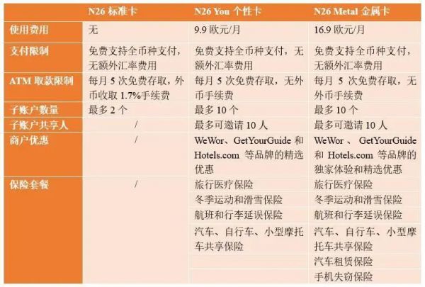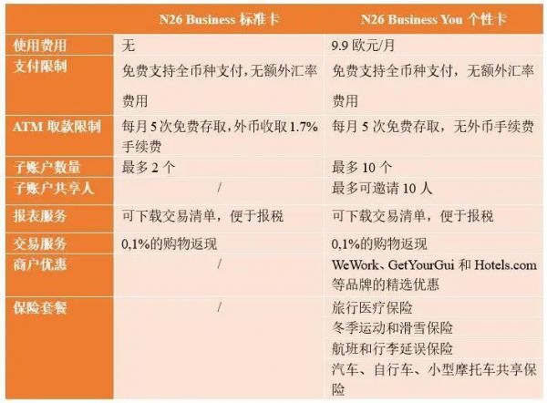 表:N26商业用户产品