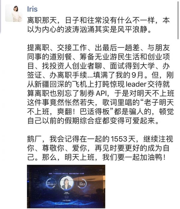 我的工作经历很简单,美国读研工作一年后就一直在腾讯工作。对于腾讯,我的感觉很像母校。自己可以随便骂、就是别人说半句不好。走的那天我没啥感觉,等从新疆玩了回来不用上班才觉得怅然若失。