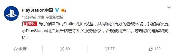 虽然官方在一周前,PlayStation中国发布了一条微博,明确提示用户要“合规使用产品”。