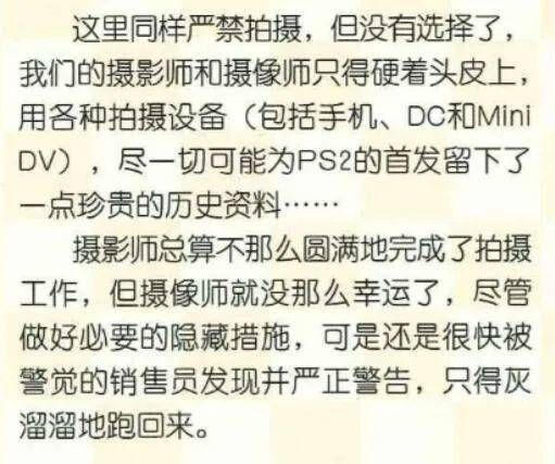 对此,电软的编辑们也只能排除万难,偷偷拍摄,试图为国行PS2留下一些历史资料,还被工作人员发现,吃了个“严正警告”,“灰溜溜地跑了回来”。