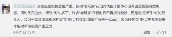 “危机感本来就是病态的,因为你们过去没得选,只能战战兢兢。现在时代不一样了,我们可以自由地玩游戏,声音也更大,自然不需要所谓的危机感了。”