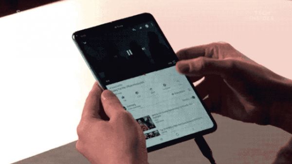 还有一些方案获益于设备形态的改变。比如三星在其折叠屏 Galaxy Fold 上就演示过一个场景:演示者展开屏幕后,从边缘滑动呼出 Dock 栏,打开一个新的应用,它就会自动填充到屏幕右侧。