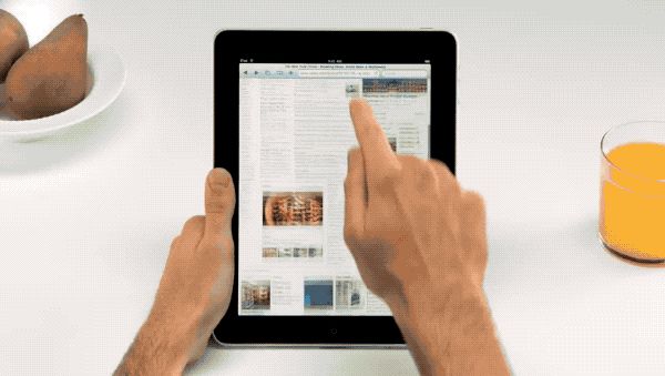 在大部分 iPad 的宣传视频中,镜头也总是聚焦在了各种手势操作上,强调手指操作的便利。