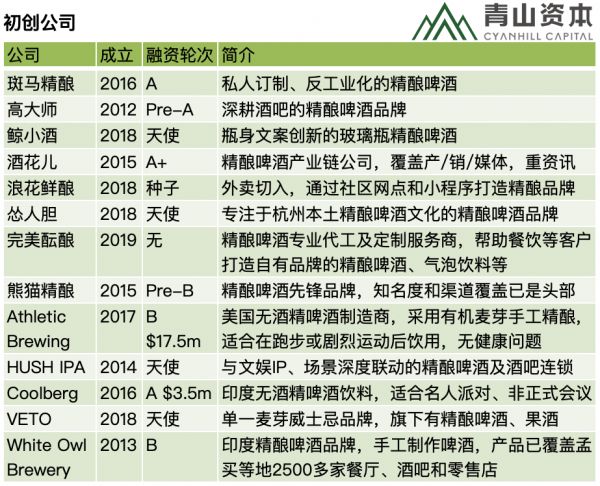 以下是啤酒赛道里的不同类型企业图谱,包括有公开信息的初创企业。也希望您来补充,详情见文末互动话题。