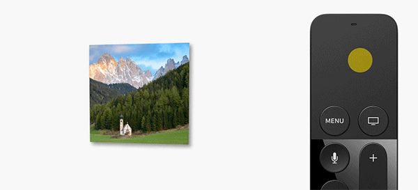 这种「聚焦(Focus)」动效的灵感,其实来自于苹果的 tvOS 系统。虽然 tvOS 系统并没有鼠标的设计,但你仍然需要使用遥控器上的触控板来操作界面,如何让屏幕上界面的变动和遥控器上的手势对应起来,就全靠这个「聚焦」来提示了。