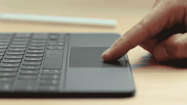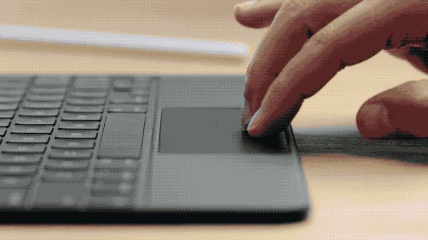 现在的 iPad 变成什么样了呢?它既有了实体键盘,也有了触控板,还有个漂浮在屏幕之上的小圆点,也就是鼠标了。