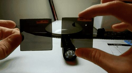 所以,如果把一副偏光镜放在另一副上面旋转,就会看到光逐渐变暗,然后变亮的过程。
