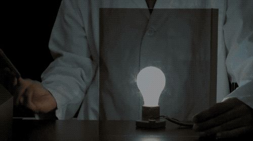 但是如果在两片偏振片中间再放一个斜着的偏振片,诡异的事情就会发生。看,加上第三个偏振片后,居然有光射出来了——