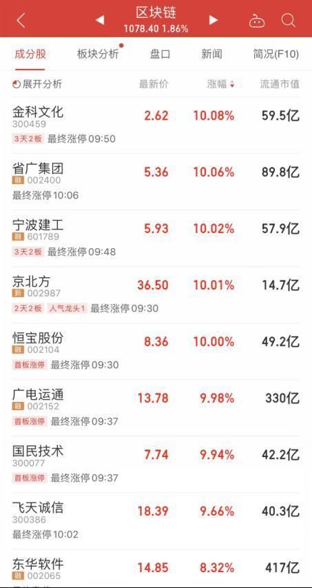 比特币的火爆行情也点燃了A股相关概念股的热情,上周五,A股数字货币概念板块涨幅居前,区块链概念股也表现亮眼,金科文化、恒宝股份等10余只股票触及涨停。