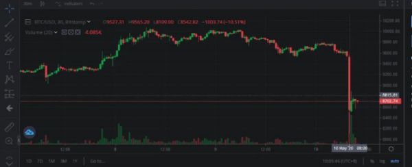 5月8日早间8:00左右,比特币价格突飞猛涨,突破10000美元/枚,最高触及10074美元/枚, 这也是自2月24日以来的首次。在24小时内,加密货币的市值猛增了350亿美元,一举成为当时市场最热议的话题,Google搜索量增长了5000%以上。