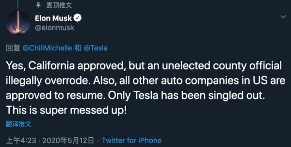此外,美国的所有其他汽车公司均获准复工,只有特斯拉被单拎了出来,这简直糟糕透了!