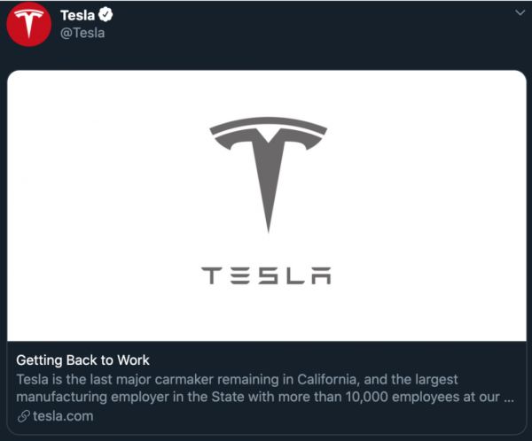 https://www.reuters.com/article/us-health-coronavirus-tesla-california/teslas-musk-says-ready-for-arrest-as-he-reopens-california-plant-against-local-order-idUSKBN22N2EY
