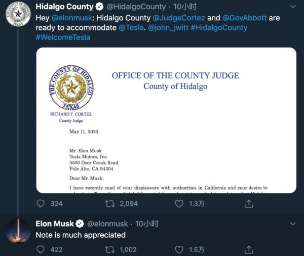 德克萨斯州、乔治亚州、犹他州、俄克拉荷马州和内华达州的官员,在推特上火速联系马斯克,鼓励搬到他们的州去。