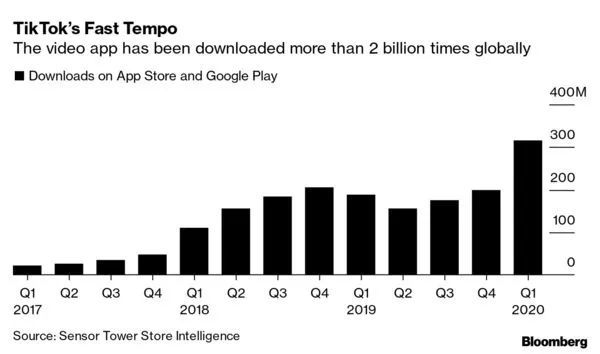 今年1月份,TikTok成为下载量最高的APP,在Google Play和Apple App Store中合计下载量超过1.04亿次。