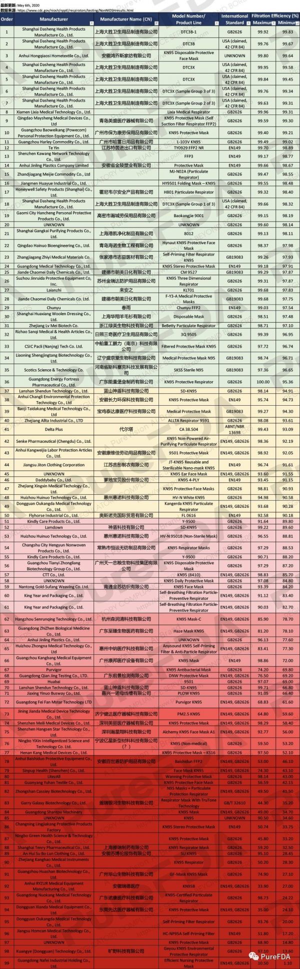 在美国购买者的压力下,CDC紧急调整名单,中国企业若想再次入围,只有检验报告远远不够,必须满足新增条件。例如,制造厂商有多个或一个Niosh认证;通过中国国家药监局的医用器械类认证;四月初上白名单的那批厂商,在45天内提交NIOSH的检测报告,且符合标准。