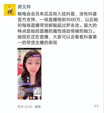 而结合业内多方面信源的反馈来看,倪叔认为:作为快手老牌主播,并且很早就混迹于龚文祥的微商社群触电会的朱瓜瓜,在运作模式是充分借鉴了辛巴的运作模式。