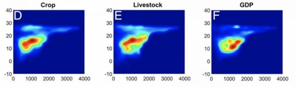 图3:农作物和家畜及GDP所对应的宜居带热图
