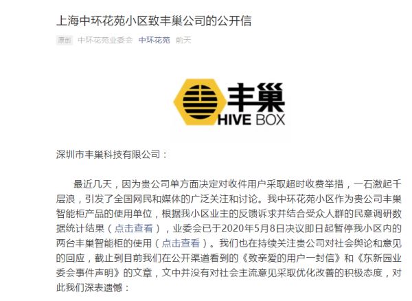 新京报:上海中环花苑小区和丰巢什么时候开始合作的?为什么会要写这封公开信?