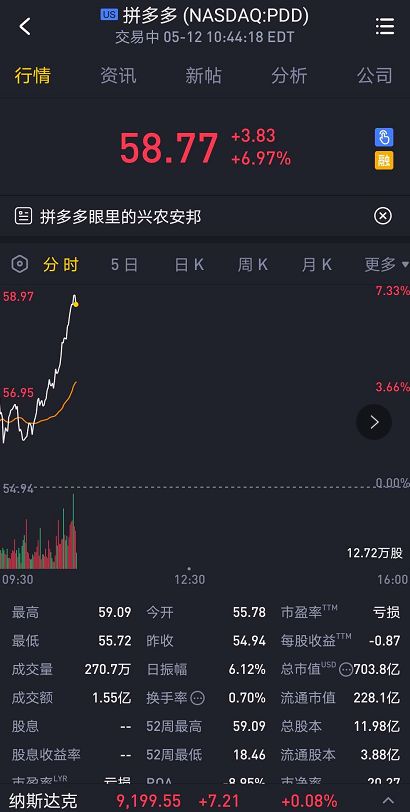 市值705亿美元超京东!拼多多周二开盘涨逾7% 创新高