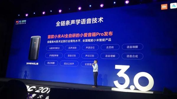 2019年11月,小米推出其首款AI全自研的小爱音箱Pro,搭载TI高性能Hi-Fi音频处理芯片,拥有6麦阵列算法,支持多通道降噪、语音识别、声纹识别、语音合成和就近唤醒等功能。同时,小米亦正式上线小爱同学3.90版本,支持全双工自然连续对话。