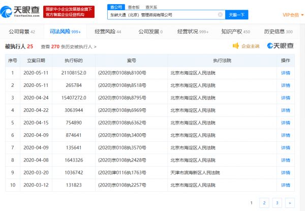 网易科技讯 5月13日消息,天眼查数据显示,5月11日,ofo关联公司东峡大通(北京)管理咨询有限公司新增被执行人信息2则,累计执行标的为2137万元,执行法院均为北京市海淀区人民法院。