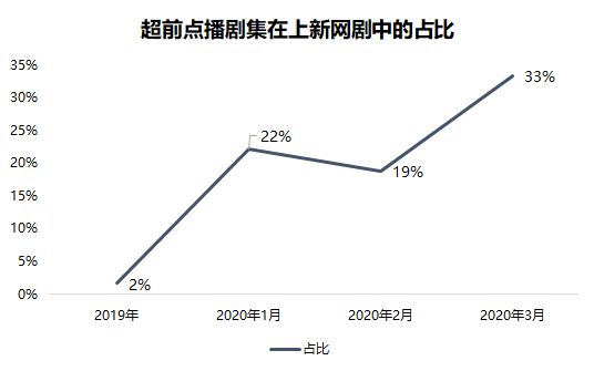正因看到了超前点播强大的印钞能力,视频平台也纷纷在点播上加码。据统计,超前点播剧集在视频平台所有上新网剧中的占比成小幅加速趋势,2019年全年为2%,到了今年3月,这一比例提升至33%。
